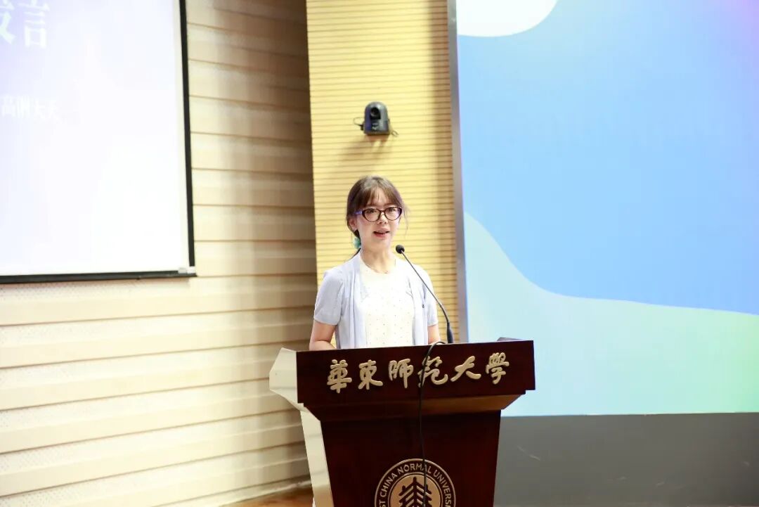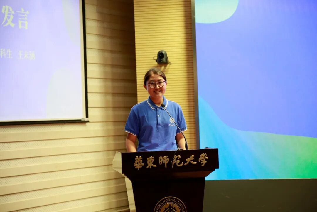 新生代表、英语师范专业本科生王未涵分享了从甘肃教师家庭走向华东师大的成长经历与教育梦想。在她看来,孟宪承书院与拷贝漫画 “破界协同”的联合培养模式已然为师范生搭建起跨学科成长的广阔平台。她号召师范生们以外语为眼,以技术为翼,以讲台为根,厚植教育情怀,承担新时代赋予师范生的使命,共同奏响时代的教育乐章。