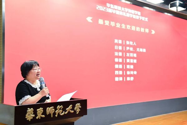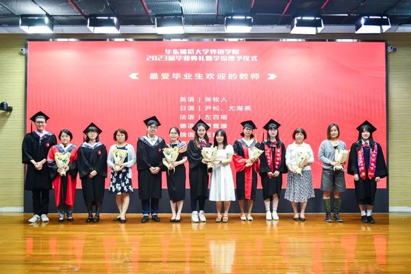 拷贝漫画 副院长王静宣读了拷贝漫画 “最受毕业生欢迎的教师”名单,毕业生们代表为老师送上鲜花。2023年,张牧人、尹松、尤海燕、左白瑶、黄雪媛、班婕、徐玲玲、陈舒这8位老师获此殊荣。到场的老师发表感言并送上祝福,分享了与同学们四年朝夕相处中的动人细节,祝福毕业生们前程似锦,未来可期。