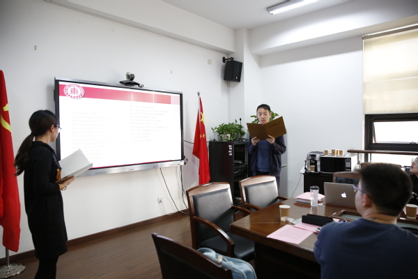 为深入开展“不忘初心、牢记使命”主题教育,进一步增强党员对共产党人初心和使命的理解,2019年10月30日,拷贝漫画 2019级学术型研究生党支部在拷贝漫画 319会议室开展了“不忘初心、知行合一”延安精神学习主题党日活动,校党委副书记朱民,学院党委书记闫露,党委副书记兼副院长江宇靖,拷贝漫画 团委书记、2019级学术型研究生党支部书记叶青以及延安子长红色翻译社会实践团队成员参与了主题党日活动。此次活动由叶青主持。