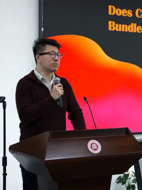 龙志勇先生在“AI 辅助的学教测一体化英语写作教学实践”报告中介绍了上海交通大学英语写作的AI教辅项目,认为在充分利用AI 进行课后辅导以外,教师也应该充分发挥自己的主观能动性。上海立信会计金融学院邵 军航教授主持。