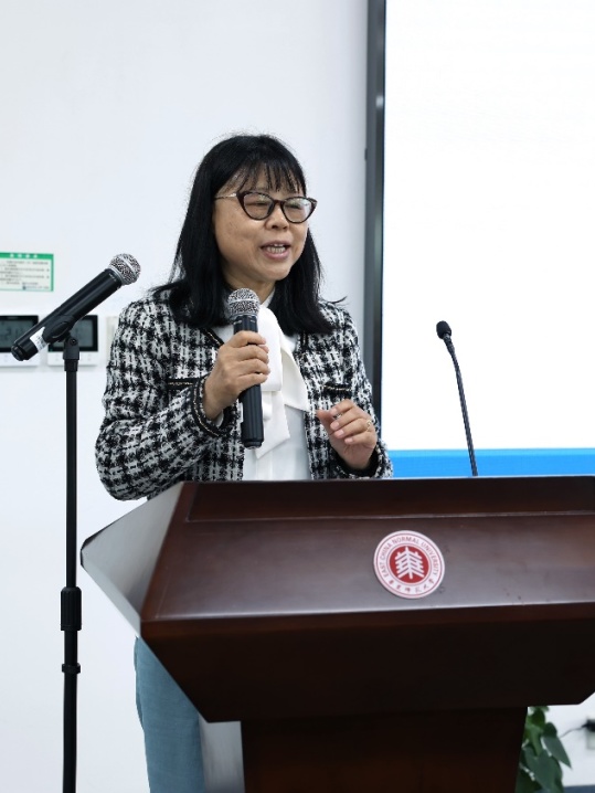 中国英汉语比较研究会二语习得研究专业委员会会长、华中科技大学徐锦芬教授作报告(左)