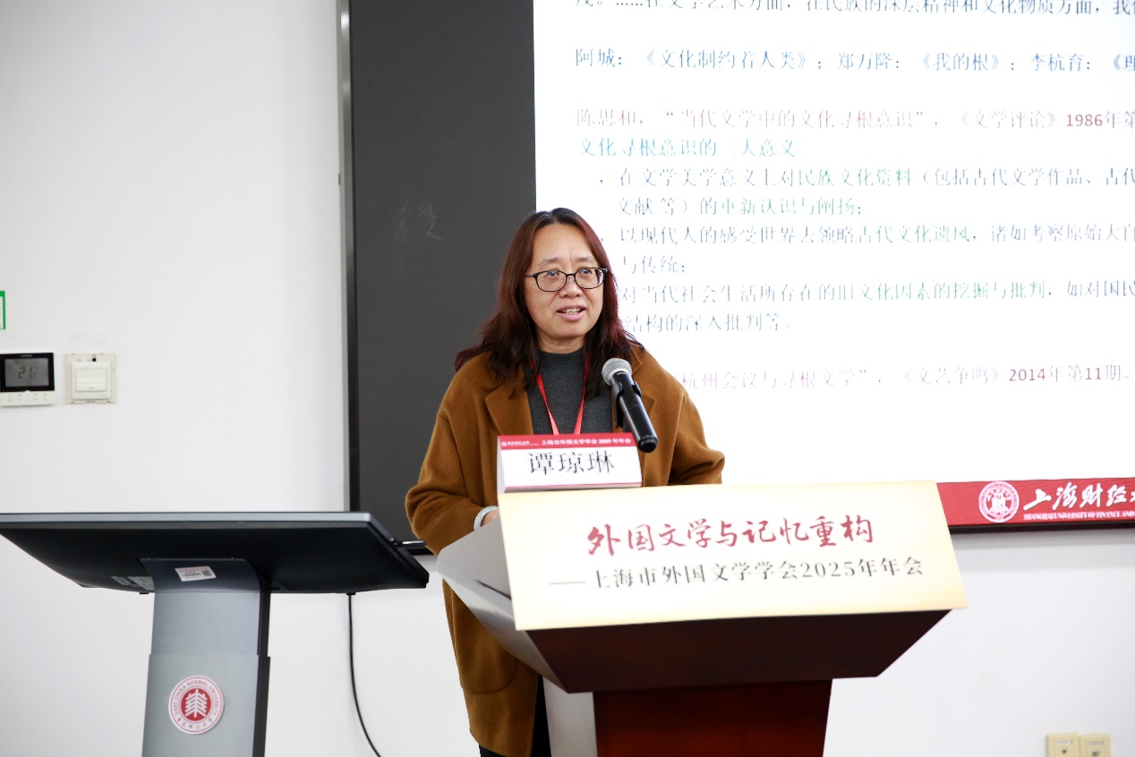 副会长、复旦大学卢丽安教授在她题为《遗忘或记忆?——从个人生命中的记忆说记忆重构实践》的报告中,结合家族史与记忆理论,指出记忆不仅是个人认知的基础,更是构建集体认同与文化共识的纽带。她聚焦两岸关系,呼吁挖掘与重构被遗忘或被沉默的历史,促进情感联结与文化认同。她特别强调,在中国的外国文学教学与研究场域,学术工作与记忆构建之间有着深厚的内在联系,记忆研究不仅是理论探讨,更是连接历史与当下、学术与社会的桥梁。