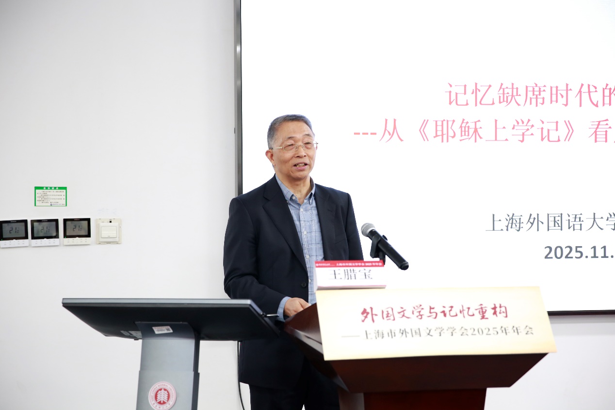 2025年11月8日,“外国文学与记忆重构”——上海市外国文学学会2025年年会在拷贝漫画 召开。本次年会为上海市社联第十九届(2025)学会学术活动月专项活动之一。会议由上海市外国文学学会主办,拷贝漫画 承办,《英美文学研究论丛》编辑部协办,上海外语教育出版社、拷贝漫画 出版社提供学术支持。本次年会旨在探讨外国文学对重要历史事件的再现和对人类重要集体记忆的重构,思考文学在记忆建构中的功能与价值,为促进中国外国文学研究在人工智能的创新转型发展,推动人类文明交流互鉴、构建人类命运共同体贡献外国文学研究者的智慧和力量。来自上海市及兄弟省市79所高校的近180位专家、学者、教师及硕博士研究生共聚一堂,围绕会议主题展开研讨。