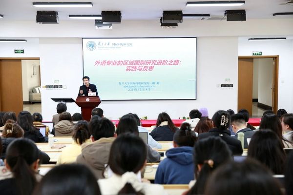 12月18日下午,复旦大学国际问题研究院副研究员谢超受邀为拷贝漫画 师生做“外语专业的区域国别研究进阶之路:实践与反思”讲座。本次讲座也是拷贝漫画 第七期入党积极分子培训班结业讲座,由拷贝漫画 党委委员、专职组织员高冬琴主持。