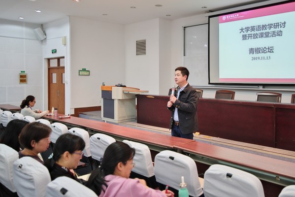 在“青椒论坛”中,大学英语教学部严文庆主任首先向与会嘉宾介绍了近年来华东师大大学英语改革的重点、取得的阶段性成果以及未来努力的方向。与会嘉宾就华东师大大学英语课程体系及第二课堂的组织管理进行了热烈的讨论,为下一步深化教改提出了建设性的意见。