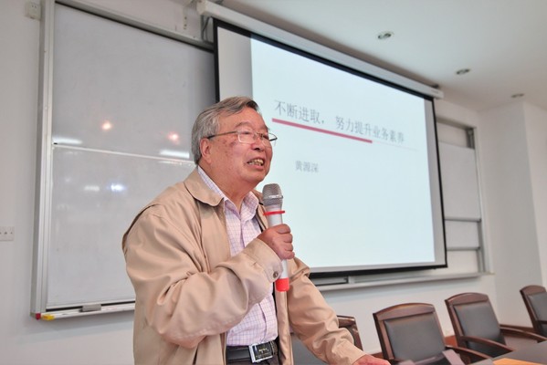 黄源深教授是资深翻译家、英语教育家和澳大利亚文学研究专家。黄教授做了题为“不断进取,努力提升业务素养”的专家讲座。讲座以个人学业追求与学术发展经历为主要内容,勉励大学英语教师要有专业自信,不能固步自封,要抵抗“满足感”,改变治学态度,提高科研能力,坚持不懈的追求事业与人生的新高度。朱晓映教授对黄教授在79岁高龄仍关心年轻一代教师的专业成长表示由衷的敬佩与感动。闫露书记代表拷贝漫画 及与会嘉宾再次对黄教授表达了诚挚的感谢。