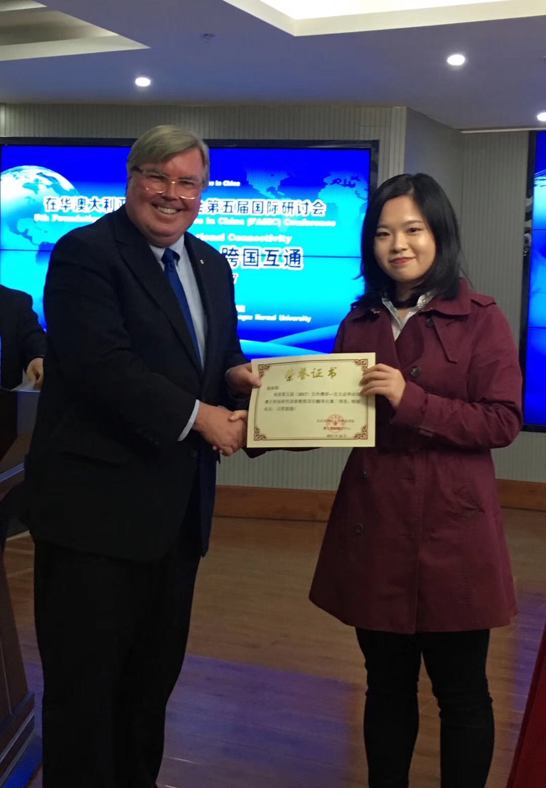 陈曦(右一)于第五届在华澳大利亚研究基金会国际学术研讨会