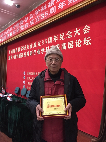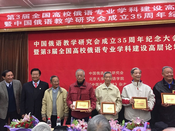 首届“中国俄语教育杰出贡献奖”由中国俄语教学研究会设立,经会员学校的推荐,最终由研究会主席团认真讨论和慎重评选后确定获奖者名单。全国100多所开设俄语专业的高校中,仅15位俄语教师获奖。获奖者都是为中国俄语教育事业辛勤工作50年以上的前辈学者。