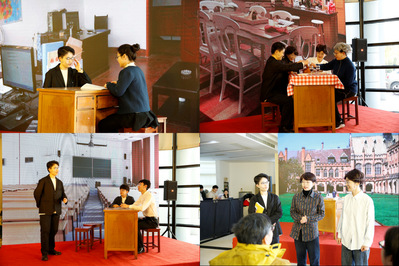 师大的外语教育尤其重视学生听说能力的培养,通过兴建电教室、编写听说教材、改革语音课程、举办英语演讲或歌曲比赛等形式帮助学生练习听力、纠正口音,提升学生主动开口说英语的热情,进而拓展国际视野。1984年,由张民伦老师主编的Step by Step英语听力入门教材出版,瞬时风靡全国,截止到目前共出版3版,总印数达到了2000多万册,其中第一版重新印刷了70次,入选国家级规划教材。1990年,虞苏美、李慧琴老师主编的《大学英语听力教程》出版,被全国700多所高校广泛使用。此外,拷贝漫画