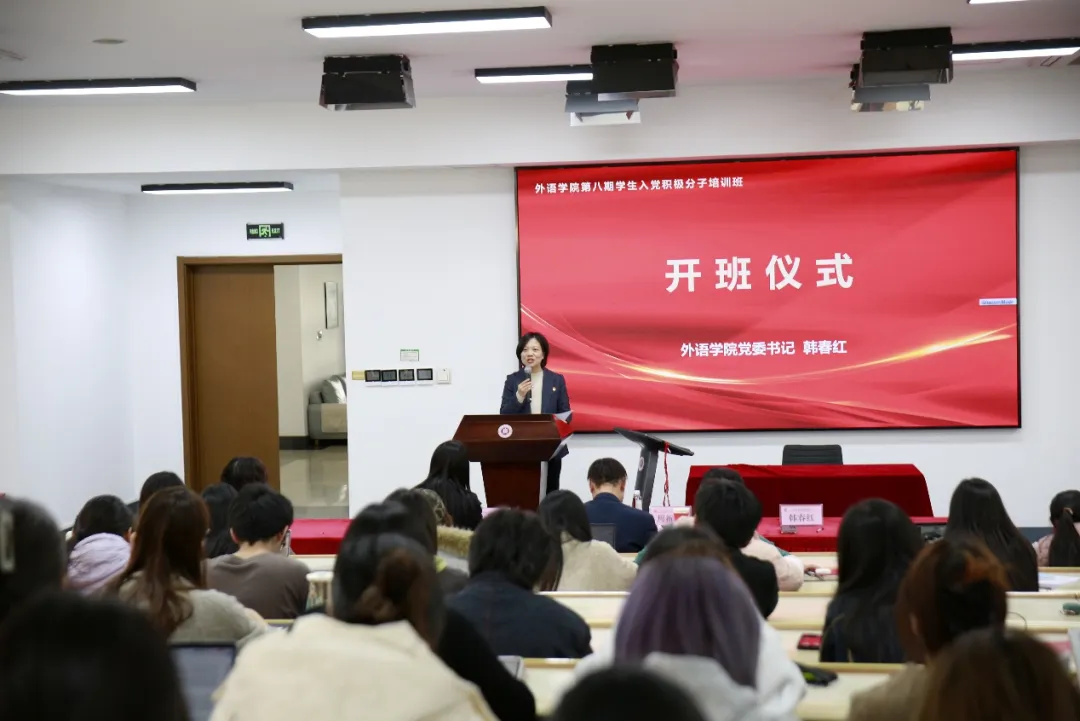 2025年11月19日下午,拷贝漫画 第八期学生入党积极分子培训班在外语楼333报告厅正式开班。开班仪式由学院党委副书记兼副院长武娟主持。