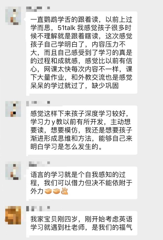杜老师的爱心课程获得了家长们的认可,上海一位二年级学生家长反馈:“到现在孩子已经做了三次作业,不仅不排斥,而且很喜欢。感谢华东师大拷贝漫画 ,感谢杜老师,感谢平台的幕后老师,感谢你们在这次疫情中给我们送来了温暖。”一位山东淄博的家长说道:“我们是第一次接触英语,意外的是孩子很喜欢这个教学模式,每天会主动拿着书本配着教材阅读训练。在这感谢每一位辛勤付出的老师们,让孩子有了一个这么好的启蒙开端,希望每个小朋友都能好好学习。”甚至还有家长称,她在孩子学习英语之余,从这次爱心课程中受到了启发与触动,她动情地说:“我从这个爱心课程群里学到的,真的不只是孩子的学习这件事,还有很多奉献的大爱的精神,任何时候都脚踏实地,除了教育孩子,也反思自己。”