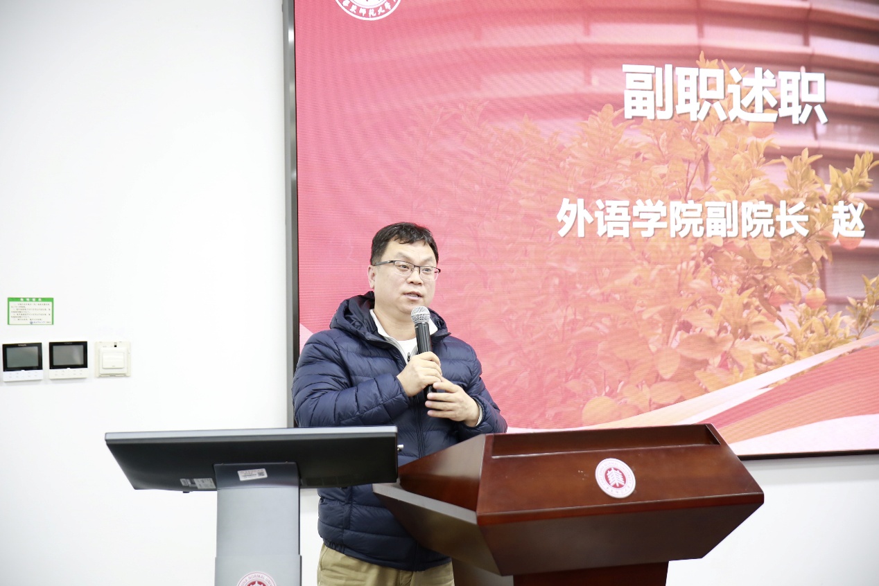 党委书记韩春红以“凝心聚力、众志成城”为题作年度工作述职。她在报告中提到,2025年,学院党委深入学习贯彻习近平新时代中国特色社会主义思想,坚持以高质量党建引领高质量发展,全面实施TRANS Plan(跨·越)计划,推动学院各项工作提质增效,高质量完成了年度既定目标任务,为科学谋划“十五五”奠定了坚实基础。在过去一年中,学院党委持续强化理论武装,将学习成效切实转化为推动改革发展的持续动力;不断完善集体领导、协调高效的班子工作机制,确保党组织领导作用充分发挥;着力夯实基层组织,锻造党员先锋队伍,持续筑牢坚强战斗堡垒;坚持以文化人,以文育人,广泛凝聚“以院为荣”的共识,充分激发全院师生干事创业的内生动力。韩春红表示,2026年是“十五五”规划的开局之年,希望全院师生继续凝心聚力、众志成城,以攻坚行动破解发展瓶颈,以创新思维激活发展动能,在“十五五”开局之年奋力谱写外语学科高质量创新发展新篇章。