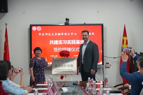 双方交流各自情况后,拷贝漫画 翻译硕士中心和RWS集团正式进行共建签约。拷贝漫画 副院长王静与RWS总裁Mark Lawyer共同为实习实践基地揭牌。