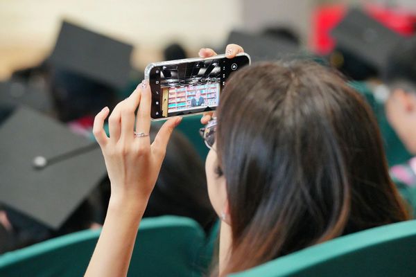 来自各专业教师的毕业祝福视频是典礼上温馨而有趣的时刻,熟悉的脸庞、不同的语言,传达着同样真挚的祝愿。