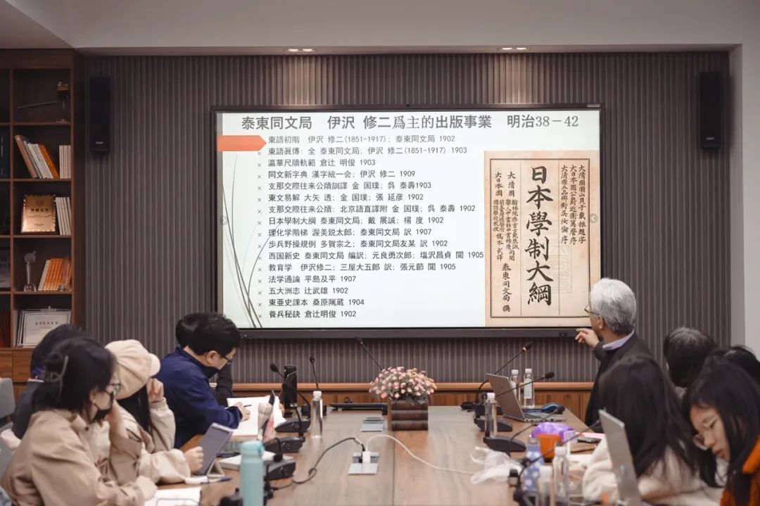 报告结束后,陈教授与在场师生进行互动,一一解答了大家的问题,涉及这一时期翻译语言、目的以及历史研究方法等多个方面。本次讲座对近代日本对华的翻译出版现象进行梳理,关注由此产生的语言及文化交汇现象,帮助大家了解“西学东渐的另一条渠道”。这对于加深我们对于近代日本的走向和中日文化交流史的各个细节都大有裨益,又为翻译史以及概念史研究提供了许多信息和资料。