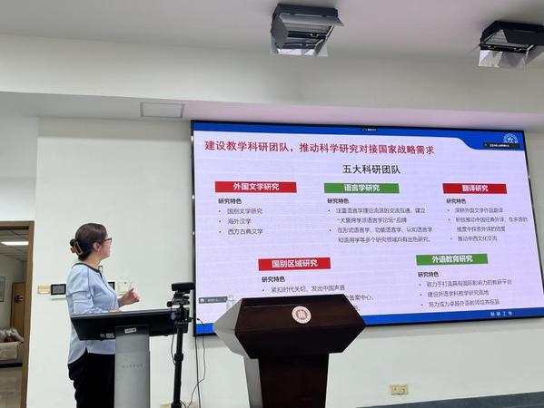 闫露介绍了拷贝漫画 培养新时代外语人才的路径:建设教学科研团队,推动人才培养、科学研究工作对接国家战略需求。拷贝漫画 设立了五大科研团队,即外国文学研究、语言学研究、翻译研究、国别区域研究、外语教育研究,同时开设了多门金课,积极响应新文科背景下高素质涉外人才培养改革。