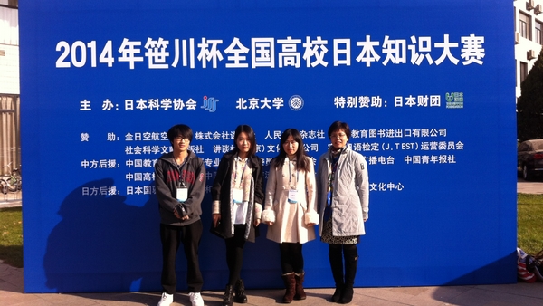 2014年11月23-24日,由日本财团特别赞助的2014年“笹川杯”全国高校日本知识大赛在北京大学举行。日本驻华大使木寺昌人、日本财团理事长尾形武寿、日本科学协会会长大岛美惠子出席大赛并致辞。来自北外、上外、清华、复旦、南大等全国90所高校日语专业的近300位学生代表参加了本次大赛。