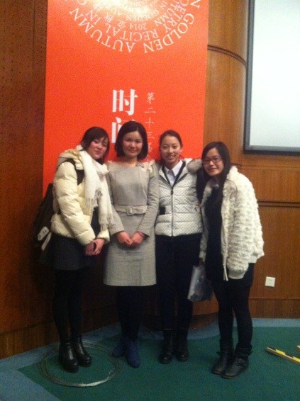 演出结束,工作室成员与其他参与活动演出、协办的同学和老师们纷纷合影留恋,亲切交谈,一同分享他们的金秋感悟。本工作室成员在此次难得的盛会中聆听诗歌的伟大,感悟翻译家的才华,更是与其他高校师生收获了一段宝贵的友谊。(王启顺)