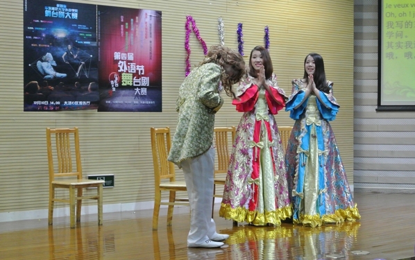 靓丽典雅的造型,优雅多姿的舞步,法语系的同学们为我们展现了17世纪中叶的巴黎市民生活的侧影。剧中的小姐妹被两个仆人贵族般的花言巧语所欺骗,谎言被揭穿后感到无地自容。法语系同学们的精彩表现让观众们充分了解了当时的巴黎平民崇尚贵族风气的现象,其台词丰富精湛,人物性格演绎得十分到位,令人叹为观止。