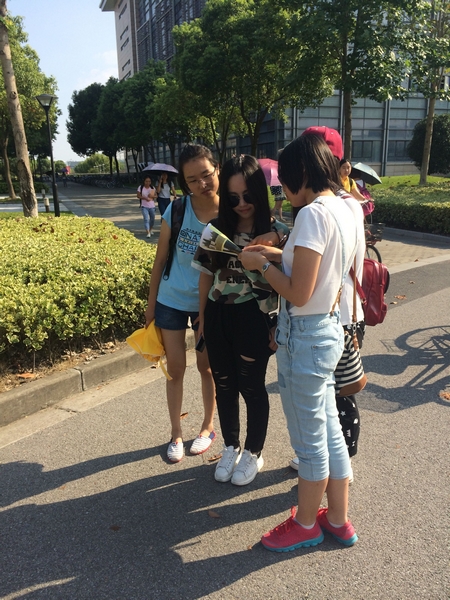新生在活动开始前拿到一张图纸,每张图纸上印有四张校园不同地点的照片。活动要求新生们在校园中找到图片的对应景观并最大程度的还原原图。
