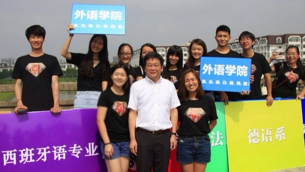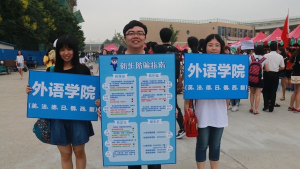 高举八色欢迎板,分别是日语系、西班牙语专业、俄语系、法语系、英语系(非师范生)、德语系、翻译系及研究生,当新生们踏上报到的必经之路,便能找到拷贝漫画