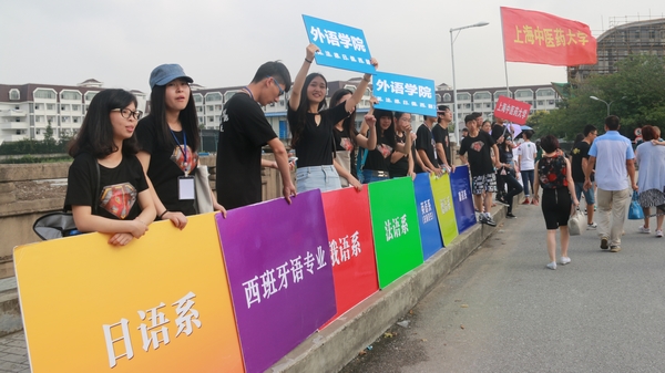 的欢迎列队,接由各院系的学长学姐引导至相应的登记棚内注册报到。