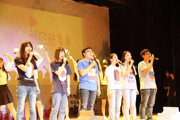 白色的衬衫,深蓝色的裙摆,这些象征着校园青春的元素首先映入观众们的眼帘。伴随着《栀子花开》清新而又悠扬的旋律,舞者们手捧栀子花徐徐走上舞台。她们用轻盈的旋转和曼妙的舞姿,向观众们诠释了青春。而更能体现外院特色的,是紧接着用英语、法语、德语、日语、俄语、西班牙语这六种来自世界各地的语言的演唱。音乐是没有国界的,熟悉的旋律将每一位观众带入到了充满了栀子花的纯白世界中。