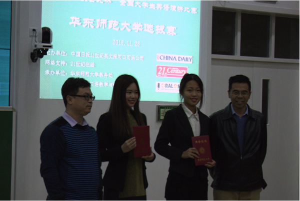 最后,Ben Gutscher先生在点评此次比赛时说学习英语的目的在于运用英语,不要惧怕开口说英语,因为只有这样,你的学习才是有意义的。庄瑜老师在最后总结时说道,华师大提供了很多提高英语口语、演讲辩论的机会,这些都是师大给予同学们的宝贵财富,希望大家要充分利用这些机会,享受参与比赛的过程并从中结识更多良师益友。