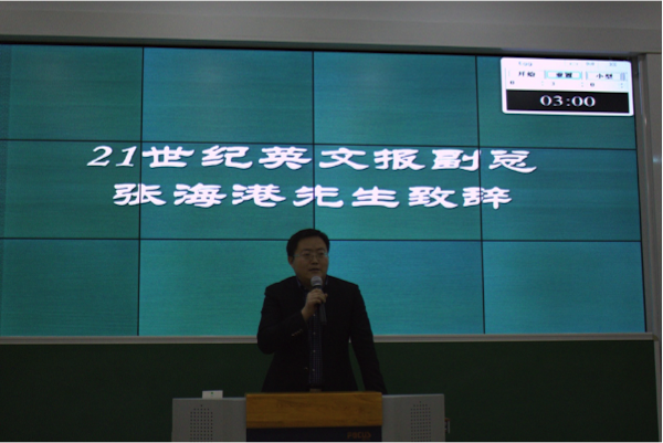 校园选拔赛在闵行校区第一教学楼214举行。金衡山副院长风趣幽默的开幕辞引发会场阵阵掌声,他让听众领会到优秀演讲的三个基本要素:to excite, to inspire, to touch everyone’s heart。21世纪英文报副总张海港先生在回忆了自己大学参加比赛的经历后告诉在场的各位同学重要的不是结果,而是能从比赛的过程中受益。校教务处长雷启立教授表示21世纪杯全国英语演讲比赛对华师学子提高英语素养起到了很大的作用,并希望选手们在比赛中能发挥出最佳水平。