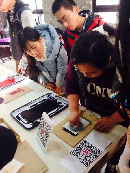 在论坛之后,同学们参观了“宣纸上的北大精神”书法作品展、“手工上的师大魂”剪纸拓印展,并亲手体验了书法、剪纸、拓印,在轻松愉快的体验过程中更好地了解了民族精神和大学情怀。