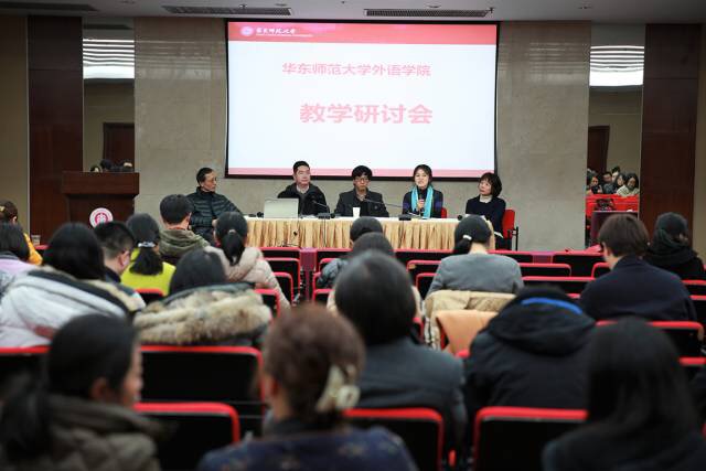 ,在闵行校区教师之家召开了本年度的教学研讨会。研讨会分为“教育技术与外语教学”和“外语教学改革与发展”两大板块,全院教师围绕这两大主题,展开了深邃、热烈、有益的探讨。