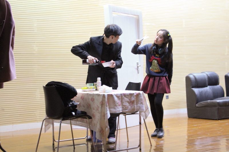 最后登场的是英语非师范的《圣诞颂歌》。该剧以“回到过去”为开端展开故事,在一开始就吸引了观众的注意力。演员们都有着极强的表现力,毫不怯场,每一句台词,每一个动作都给观众留下了深刻的印象。其中饰演男主角的楼清源同学以富有张力的演技完美刻画了一个尖酸刻薄、视财如命的老生意人的形象,博得满堂彩,荣获最佳男主角奖。