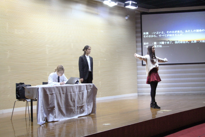 第二个登场的日语系大胆改编东野圭吾的《黎明破晓的街道》,既保留了经典的桥段,又加入了现代的元素,并创新性地将案发经过通过小剧场的形式完美重现,带给观众一种立体而又真实的画面感。日语系《黎明之街》用独特形象的表演形式,锦上添花的灯光与音效,带领全场观众走入推理悬疑的世界,在剧中饰演仲西秋叶的陈诗雨同学获最佳女主角奖。