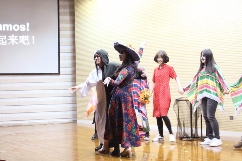 大赛的下半场从西班牙语专业的《死后的世界》开始,该剧是同学们为了祭奠2017年墨西哥地震中的遇难者而编排的演出。东方的黑白无常与西方的骷髅公主对死者灵魂的争夺,代表了东西方文化的碰撞,体现了两种截然不同的对待死亡的态度。对死亡的思考,对生命的尊重,是戏剧之外,西班牙语专业带给我们的宝贵的精神财富。