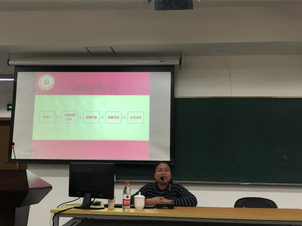 随后,李海芬以“争取做一名懂规矩、讲党性的合格党员——党内基本知识介绍”为题,向学员们讲解了入党程序和实务性的工作。通过她的授课,学员们深入仔细地了解发展入党条件、入党的主要阶段等入党程序;也牢固掌握了作为党员必须要知道的党务知识,如转接组织关系的程序、填写各类审批表的要求等。