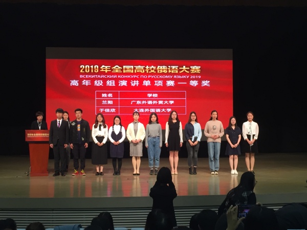 本次大赛由初赛,复赛和决赛三部分组成,初赛为笔试,复赛分为命题演讲和口语表述,决赛为俄汉互译,并设有演讲和才艺单项奖。赛题难度适宜,多有创新且与时事热点相结合,全面考察学生的俄语语言文化水平和实际运用能力。俄语系分别派出低年级组的张从笑同学与高年级组的陈诗瑜同学,在邵鹏洁老师的带领下参加了本届大赛。陈诗瑜同学在演讲单项赛中凭借纯正的语音语调、地道流畅的表达、大气从容的台风在高手如云的比赛中脱颖而出,最终取得了演讲单项赛二等奖的好成绩。低年级组的张从笑同学也有不错的表现,尽管学习俄语只有一年,但通过自己扎实不懈的努力,做到了最好的自己,未来可期。