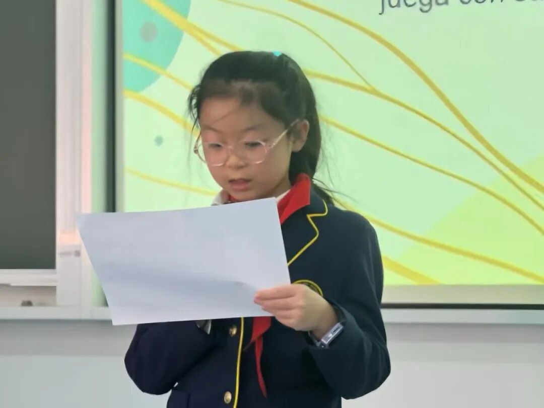 比赛以个人赛形式进行。选手们首先随机抽取并朗读一段西班牙语短文,随后回答两道与西语字母发音及分音节规则相关的题目。参赛学生准备充分,在朗读环节中展现出清晰准确的发音、饱满的语调与自信的表现力;在问答环节中也普遍表现出对西班牙语语音规则的扎实掌握,充分体现了前期教学训练的成效。