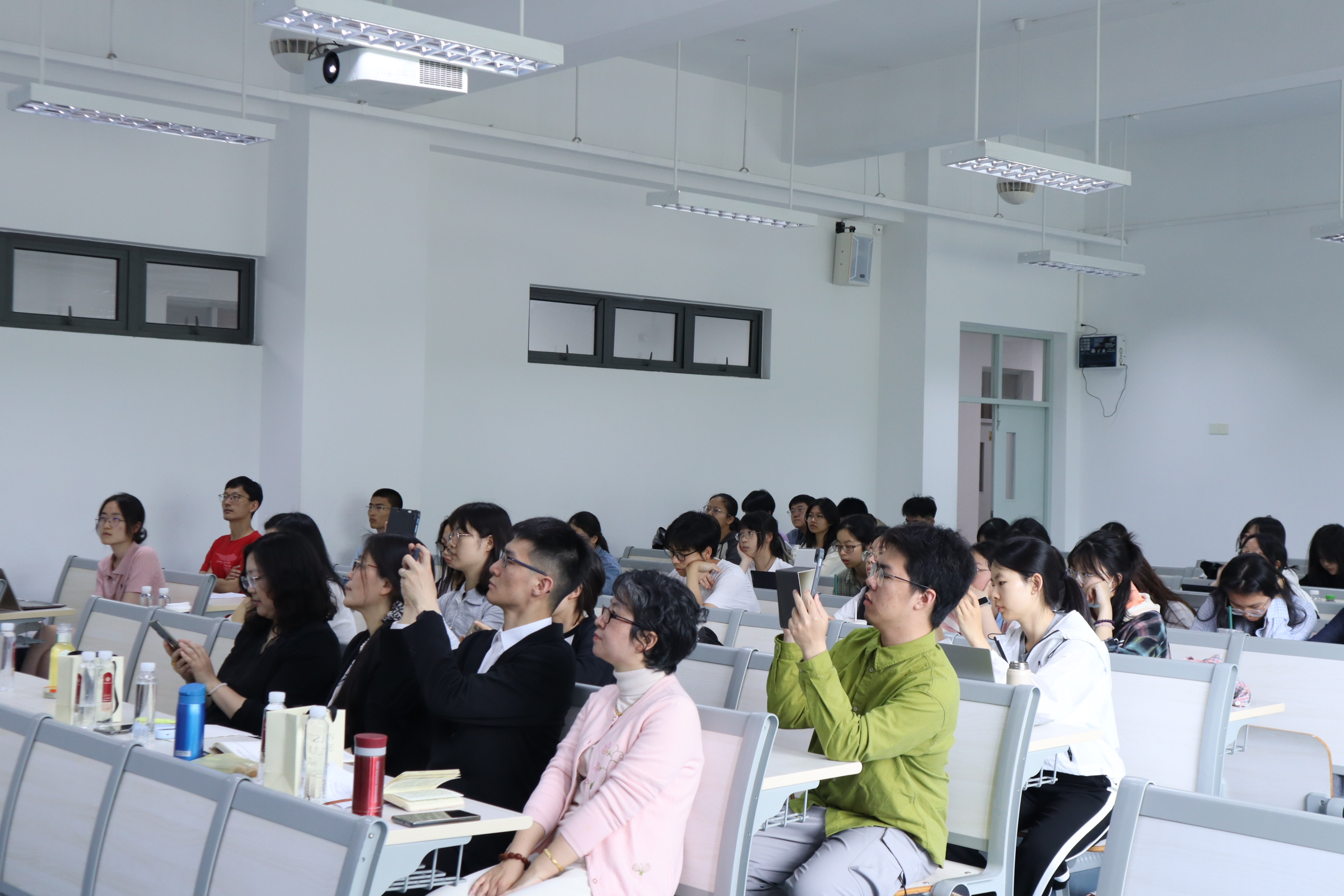 最后,与会师生积极与卢老师展开问答和探讨,卢老师就“卡夫卡热”在新世纪的现实意义、卡夫卡的性格特点及其文学创作的矛盾与关系、如何避免对卡夫卡个人生活的过度解读并正确理解卡夫卡的精神世界等问题做出回答。卢老师与德语系黄雪媛老师深入交流,以卢老师援引卡夫卡的开场白——“把我当作一个梦”为切入点,两位老师表达了对于卡夫卡作品的重要编纂者布罗德的敬意与喜爱,交流了他们研究卡夫卡的学术志向和情感认同。这是一场深入浅出、别开生面、有深度、有温度的学术讲座。本次活动吸引了德语系、中文系、国际汉语文化学院和思勉人文高等研究院师生参加。