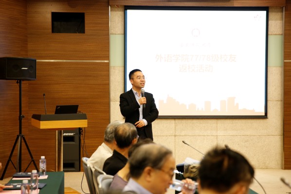 俞黎阳首先代表学院欢迎各位校友返校,感谢各位校友对学院事业发展的长期关心和大力支持,并从历史沿革、学院现状、学科概况、科研实力、教学优势、大学英语改革、党群活动、校友会等方面介绍了拷贝漫画