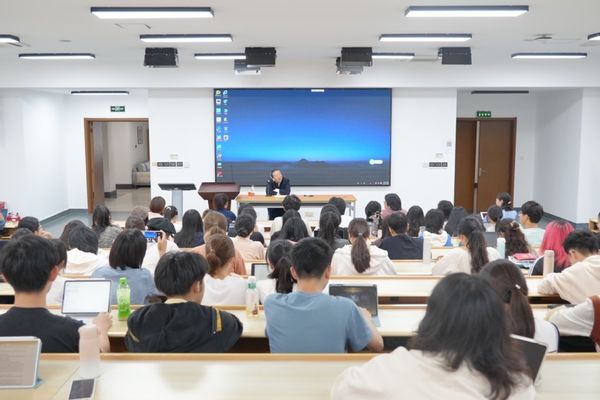 在提问环节,林老师结合自己的亲身经历,用幽默风趣的语言耐心且详细地解答了同学们提出的有关翻译节奏把握,以及文章写作技法等方面的困惑。