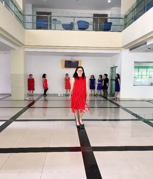 工会在院党委和各系部的大力支持下,组织动员、精心挑选了来自大学英语教学部、翻译系、行政等岗位的十多位教师组成参赛队伍。组队伊始,大家便集思广益确定了“一半是海水,一半是火焰”的主题。从四月初就投入到紧张的赛前训练中,构思编排、基本功训练、音乐的筛选编辑、视频制作、文字解说、服饰的采购搭配及妆型的选择,无一不是反复斟酌、不断调整优化。不少老师把自己的衣服贡献出来作为参赛服装,刘玉琴老师自己动手改制演出服。大家都放弃个人休息时间反复排练。