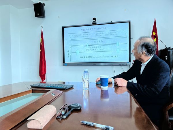 首先,渡边老师指出,中日之间有着共通的思想框架。他以《古今和歌集》“假名序”的“和歌发生论”入手,通过对《礼记》中关于天与人(气与情)关系进行概括总结,重新审视了“假名序”中的“ことわざしげきもの”这一概念。他认为,这指的是人在接触外部事物后产生的喜、怒、哀、乐等情感。这一分析揭示了中日文学在在近代以前有着共通的世界观、人类观和诗歌生成理论。此外,渡边老师还以《竹取物语》为例,探讨其中反映的中国神仙志怪小说元素以及平安时代日本文人创作的汉诗文特点,以阐明那个时代人们对于神仙世界有着共同的认知,从而提醒大家一定要在当时文学和思想大文本中去定位和解读某个作品的小文本。