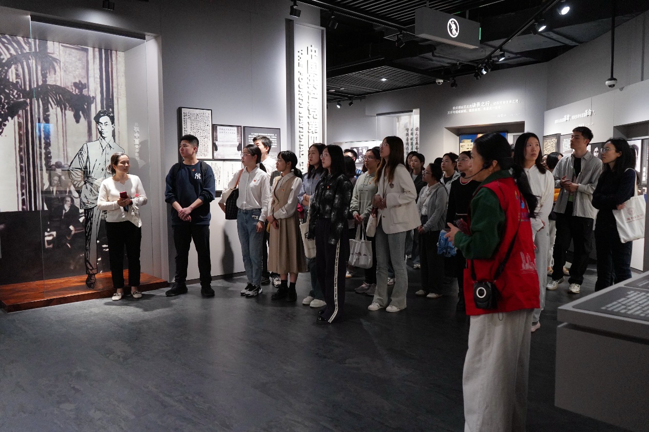 在讲解员带领下,师生们重点参观了龙华烈士纪念馆。龙华烈士纪念馆是原国民党淞沪警备司令部军法处的刑场之一,也是当年枪杀“龙华二十四烈士”的刑场。展馆以时间脉络与精神谱系双线交织,共分八个展厅,分别为“序厅(照亮信仰的殿堂)”“信仰的召唤”“使命的执着”“信念的坚守”“民族的脊梁”“胜利的奋争”“时代的先锋”和“尾厅(仰望)”。通过1500余件珍贵文物、400余幅历史照片及多媒体交互装置,立体呈现了自鸦片战争以来256位英雄儿女的感人事迹。