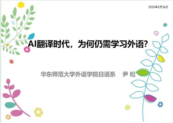 3月24日晚,“语”见未来——“全球视野下的外语学习与文化探索”系列讲座2025年第二讲在腾讯会议上如期开讲。日语系尹松教授应邀围绕“AI翻译时代,为何仍需学习外语?”展开讲演。来自全国各地的中学生及北京大学、上海交通大学、中国人民大学、中山大学、武汉大学、四川大学等高校师生210余人次在线聆听了本场讲座。讲座由华东师大拷贝漫画