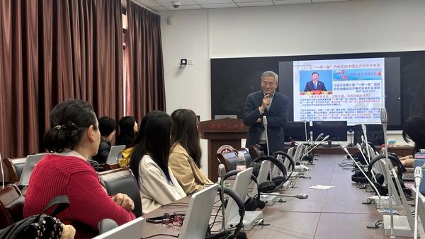 陆教授指出,娴熟地使用对象国语言不仅可以让“咫尺天涯”的两个民族变得“天涯若比邻”,让中华民族学习和借鉴世界其他优秀民族的文化,还能通过讲好中国故事,让世界其他民族更深入了解当代中国。前途是光明的,道路是曲折的!陆教授鼓励在座的西语专业学生把握中国与拉丁美洲经贸关系和文化交流迅速发展的良好机遇,打下扎实外语基础,提升自身的知识水平,培养多种复合型技能,立志成为国家未来的高端人才。
