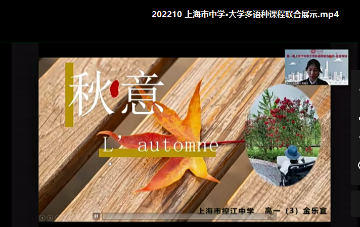 金秋送爽,万里河山披锦绣。上海市法语学子们期盼已久的首届上海市中学·大学多语种联合展示活动(法语专场)于2022年10月19日上午正式拉开帷幕。此次活动为线上线下同时进行,并面向全市所有开设法语课程的中学直播。