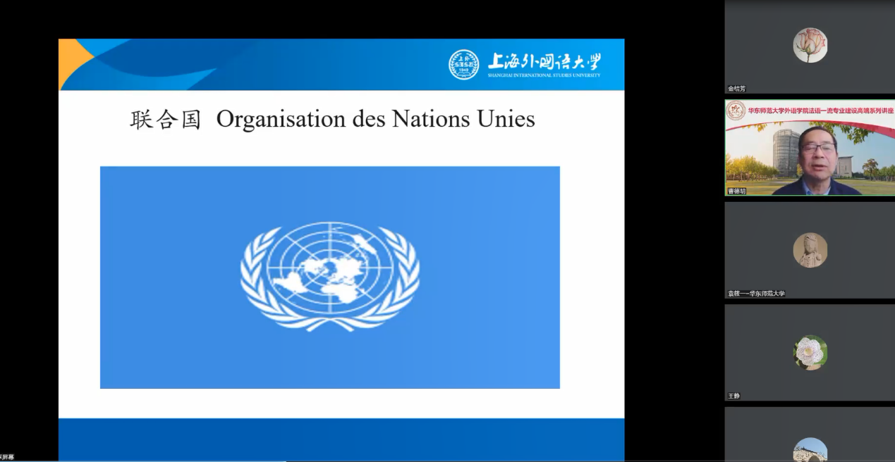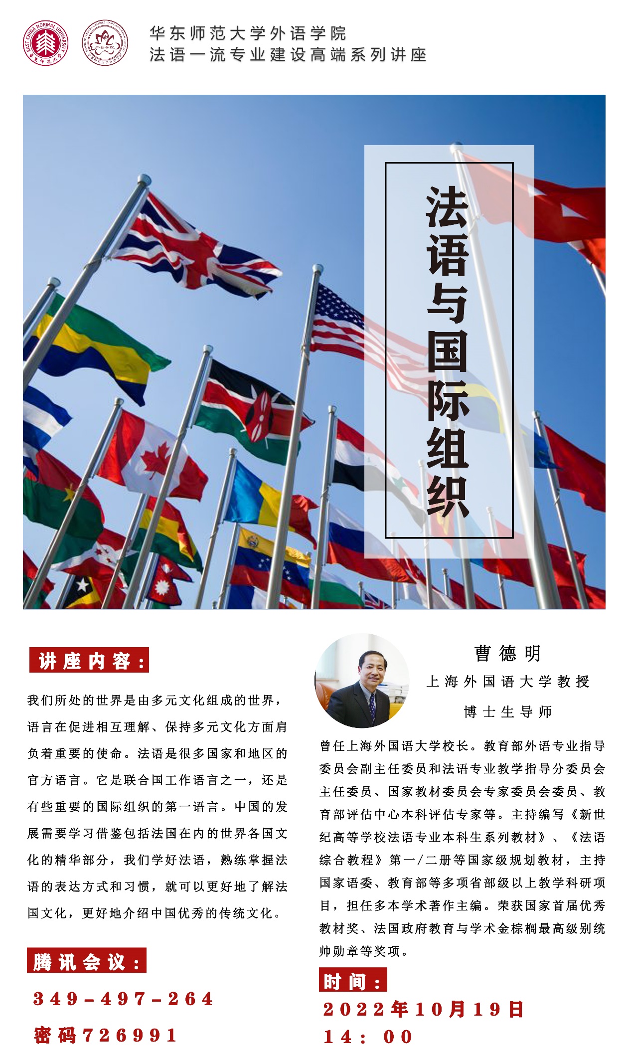 法语系邀请,原上海外国语大学校长,上海外国语大学教授、博导,教育部外语专业指导委员会副主任和法语专业教学指导分委员会主任、国家教材委员会专家委员会委员、教育部评估中心本科评估专家曹德明教授做了题为“法语与国际组织“的讲座。本次讲座是拷贝漫画