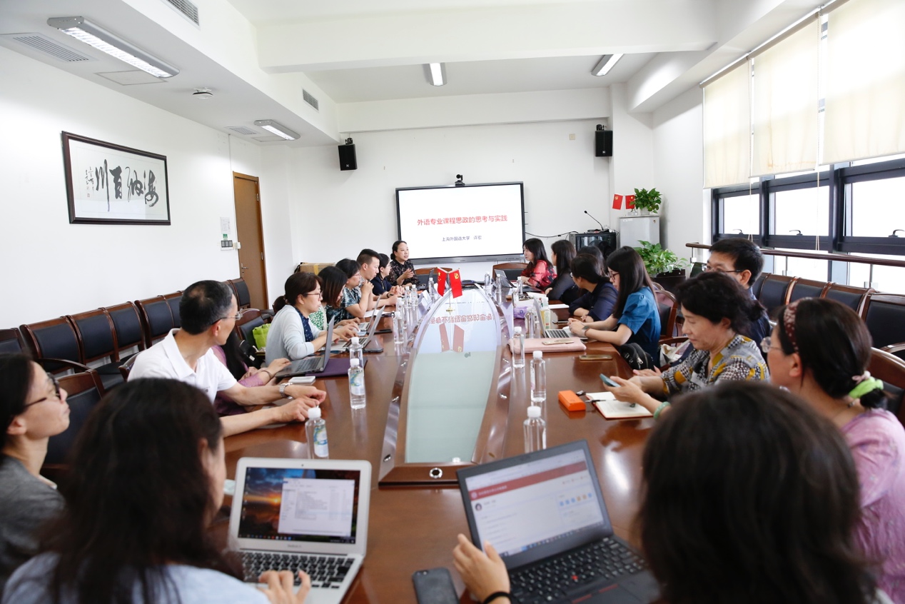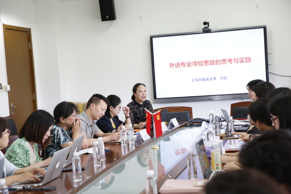 许宏教授首先梳理了从2014年至今,教育部以及上海市关于推进高校课程思政建设的重要论述,在理论上明确了高校课程思政建设的内涵、方向及遵循原则。结合外语专业课程的特殊性,她指出,专业课教师既要培养知识丰富、本领过硬的外语人才,同时也要善于挖掘蕴含在专业课中的隐性思政教育元素,以建设一流的专业课程为目标,实现价值引领、知识教育、能力培养的有机统一。