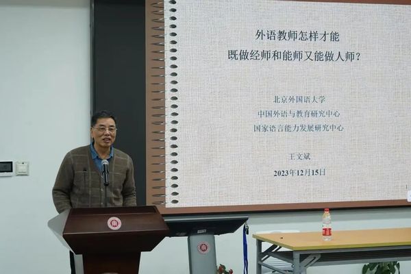王文斌教授在讲座伊始指出,在Chat-GPT引发的教育冲击波下,外语学科不断遭到外界的“唱衰”,中国外语教育正面临着严峻的挑战。破解当下面临的外语学科发展困境,亦呼唤着外语教师在新时代背景下践行新责任,展现新担当,做到“经师”、“能师”和“人师”的统一。