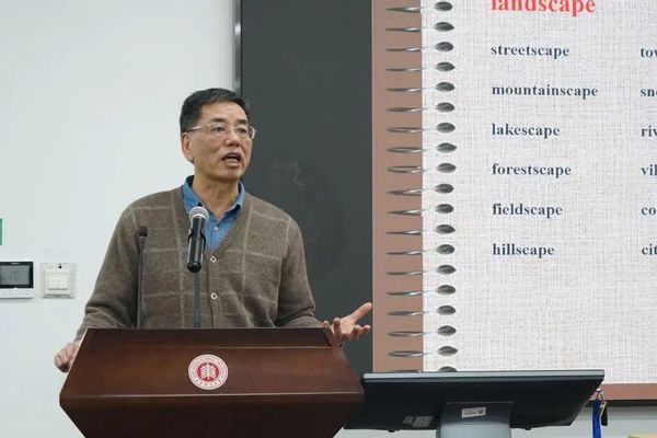 王文斌教授用简单通俗的语言解释了何谓“经师、能师和人师”;强调老师要以高超的教育能力引导学生的专业思想,要用人格魅力呵护学生的心灵。同时用高中英语教学的实例以及对“云山”“叶露”等词语的英语翻译举例,以见微知著的生动例证,对“经师”等概念进行了进一步阐释。讲座最后,王文斌教授鼓励同学们继续通过不断练习,来提高自己语言表达的生动性和丰富性,这也是在外语教学中需要继续努力的地方。